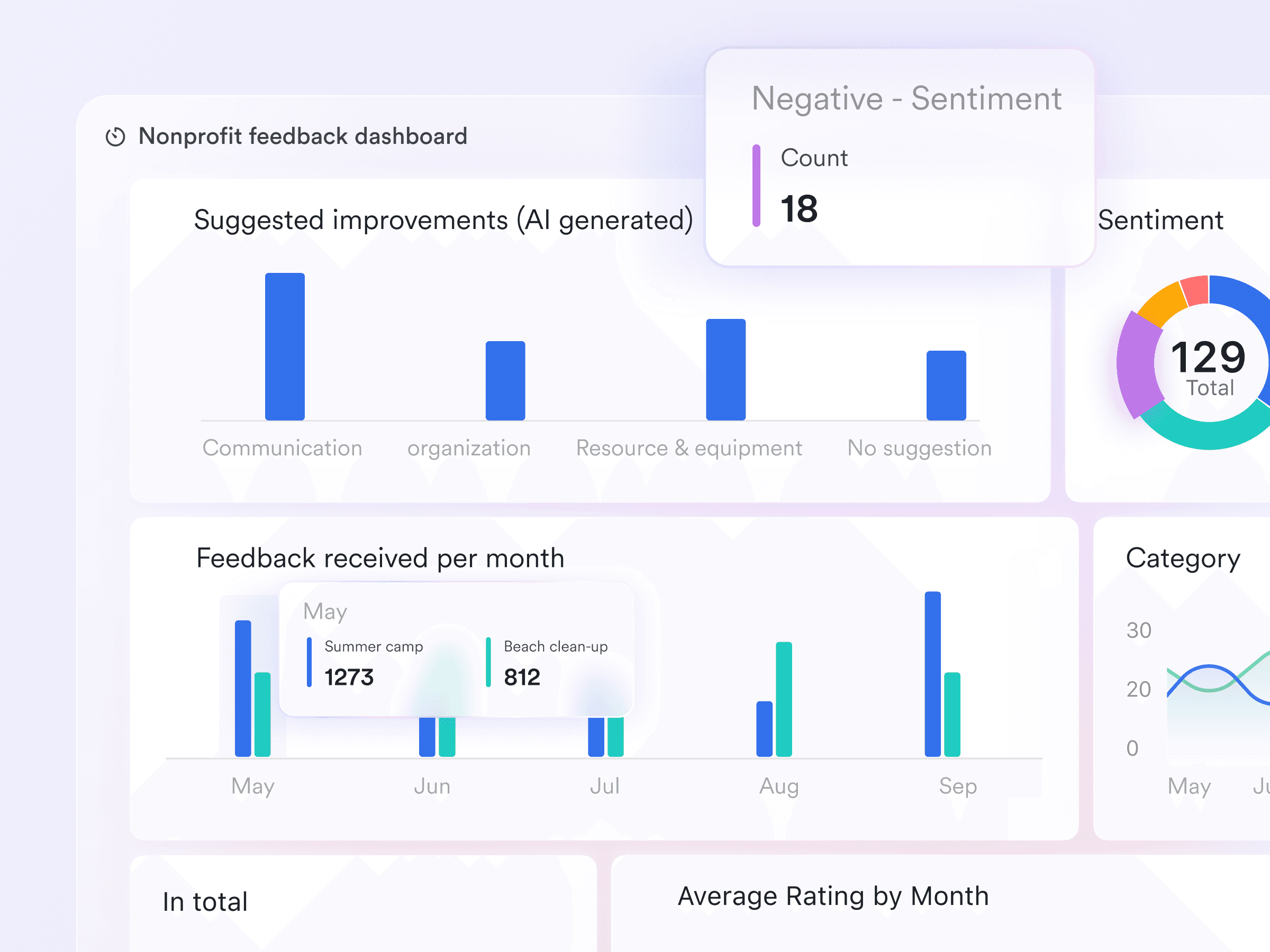 Get instant access to average scores, feedback numbers, and sentiment breakdowns.