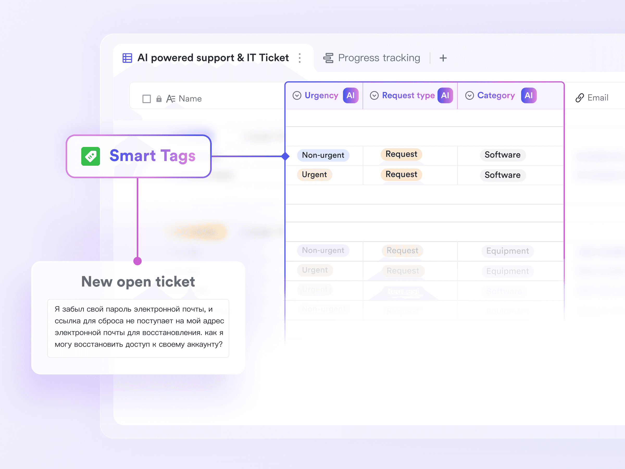 Automatically categorize tickets by urgency and request type to streamline ticket handling.