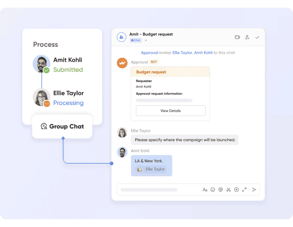 Bring customer service, sales, and support teams together in one chat for faster, coordinated responses.