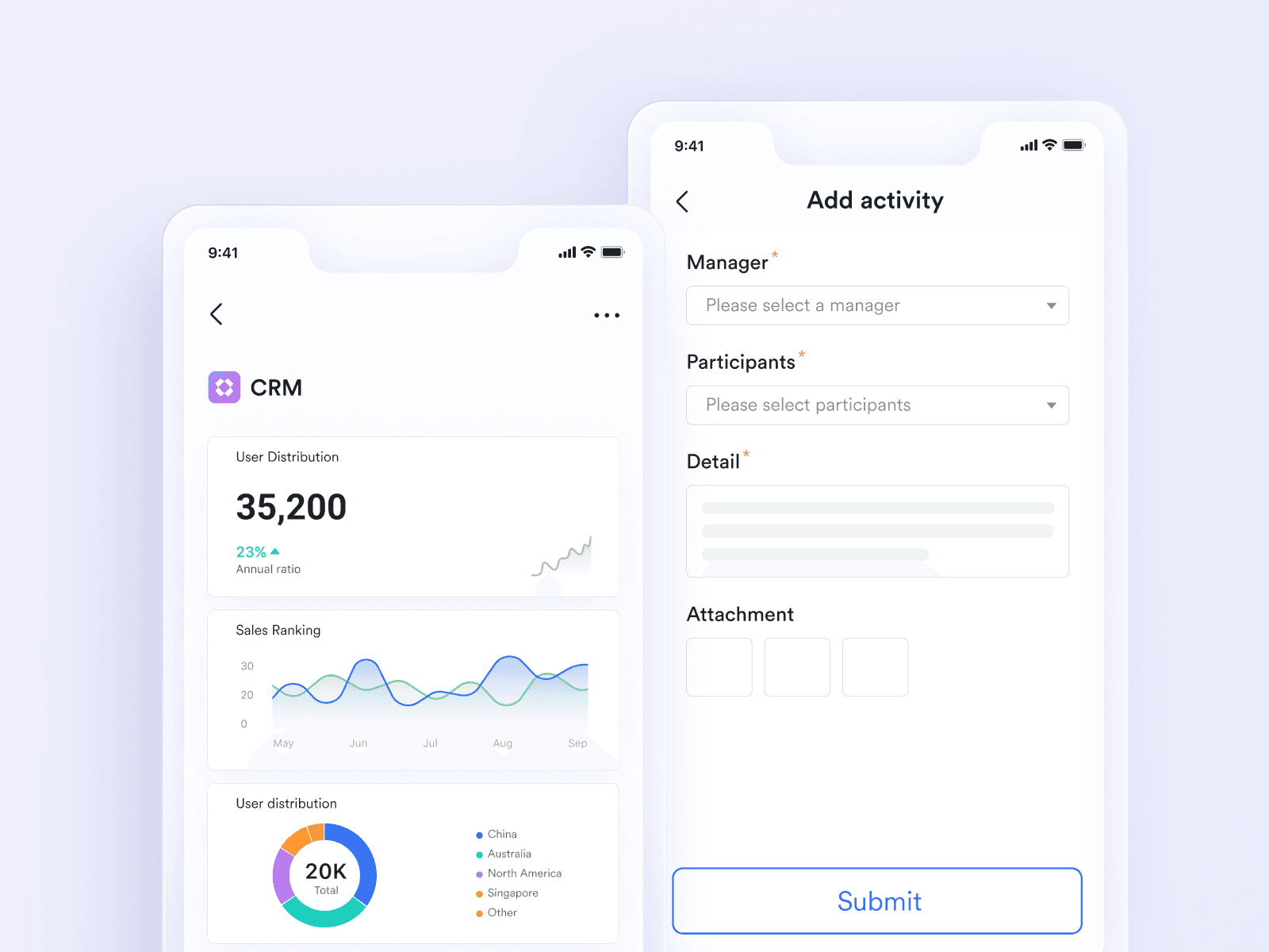 Lead management, account management, deal management, and post-sales project management—all within a customizable no-code platform.