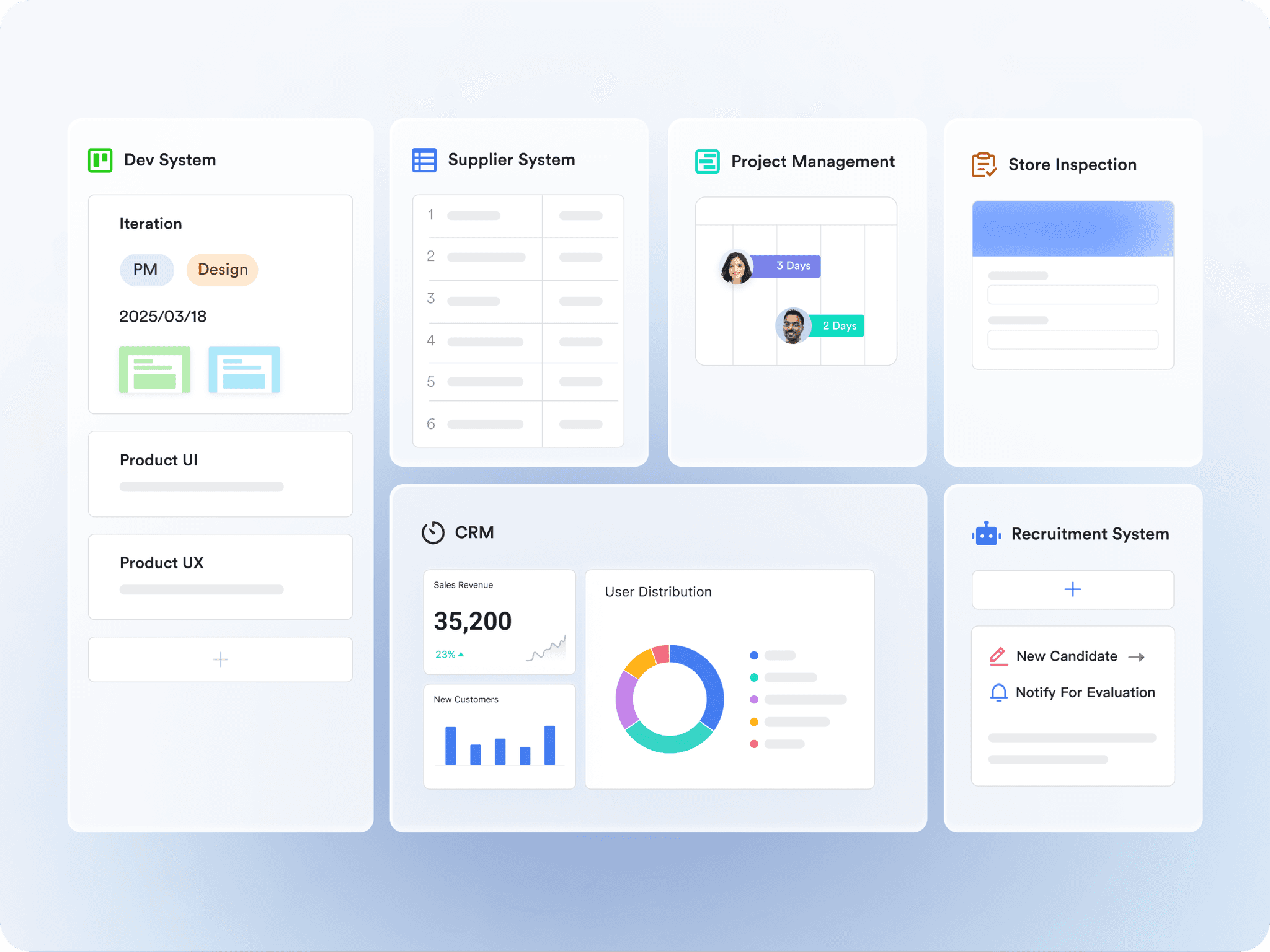 Off-the-shelf software doesn’t fit. With Lark Base, customize business systems within an hour—without developers, high costs, or long wait times. As your business evolves, so do your tools—fast, flexible, and built to fit your needs.