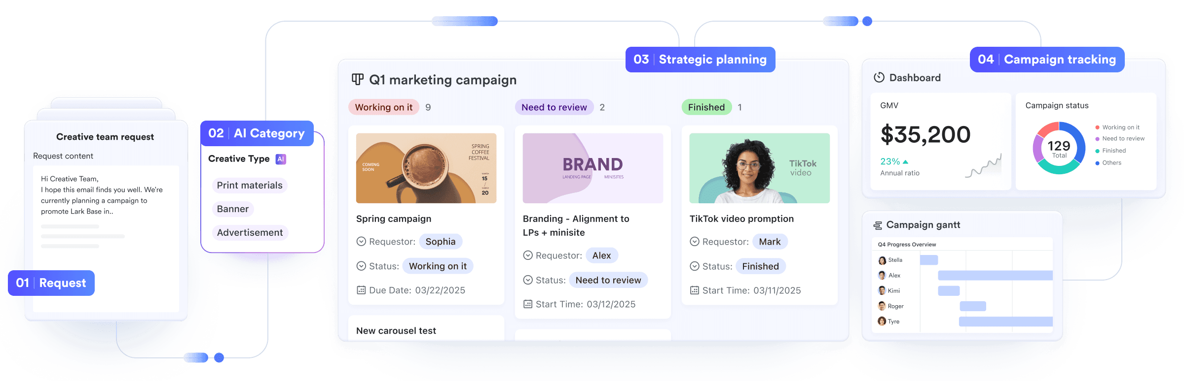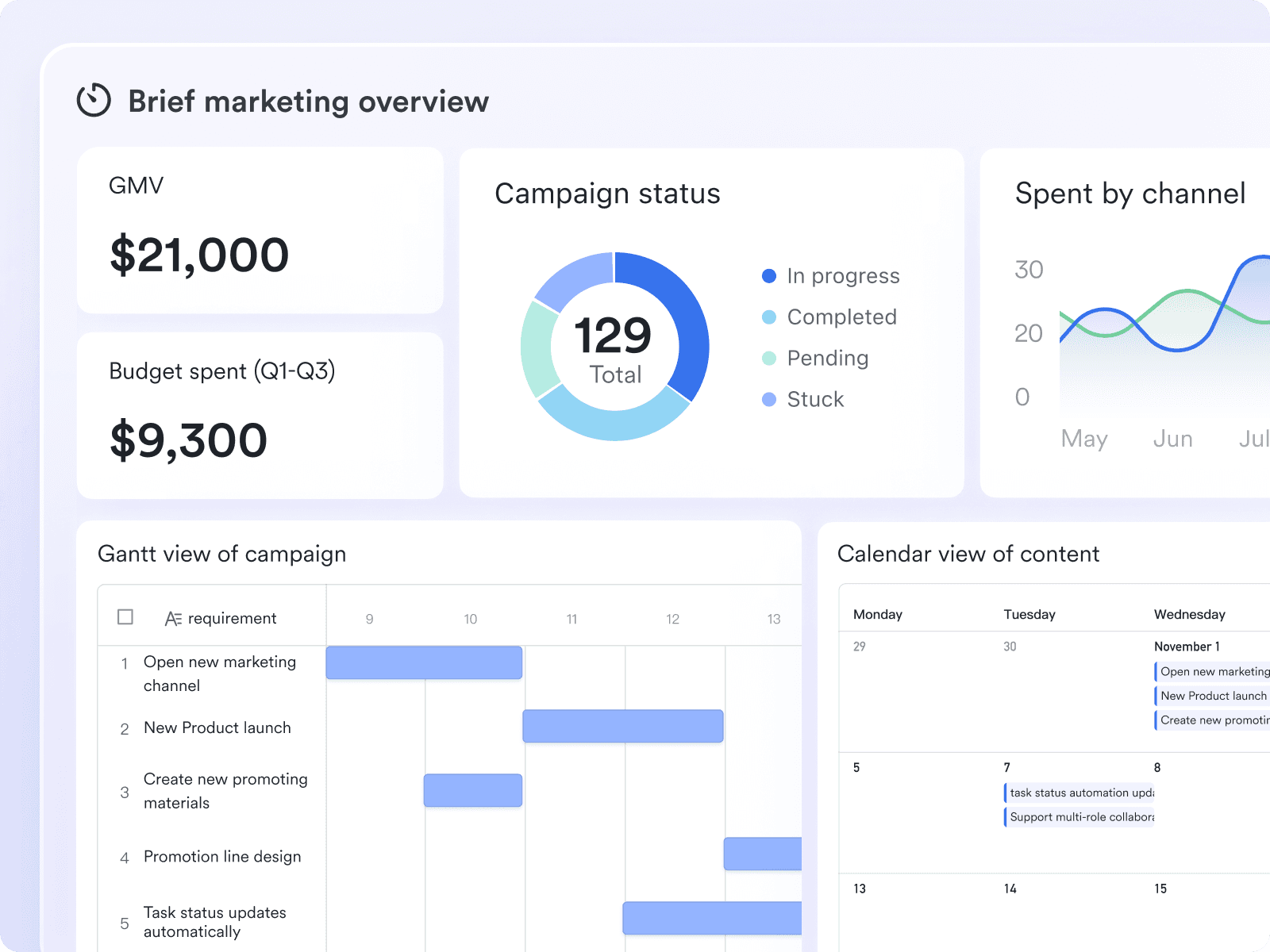 Streamline your marketing with AI-powered tools to manage requests, plan campaigns, organize assets, and optimize performance—all in one powerful platform.