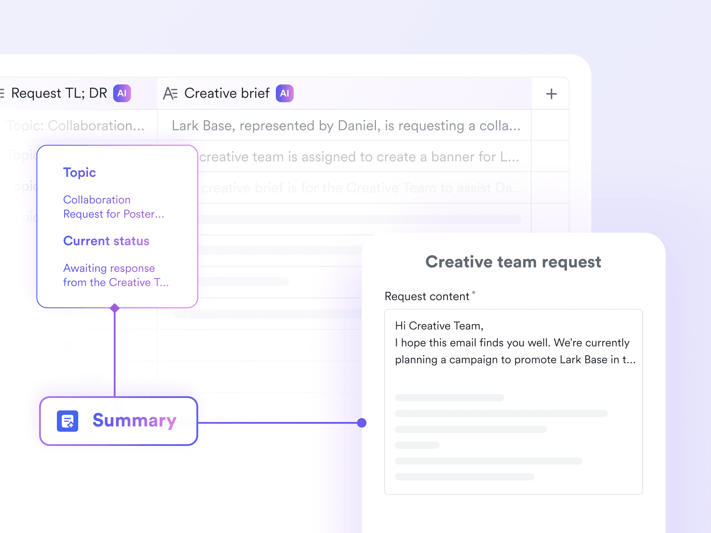 Automatically analyze and summarize requests you receive, extracting key points and user needs.