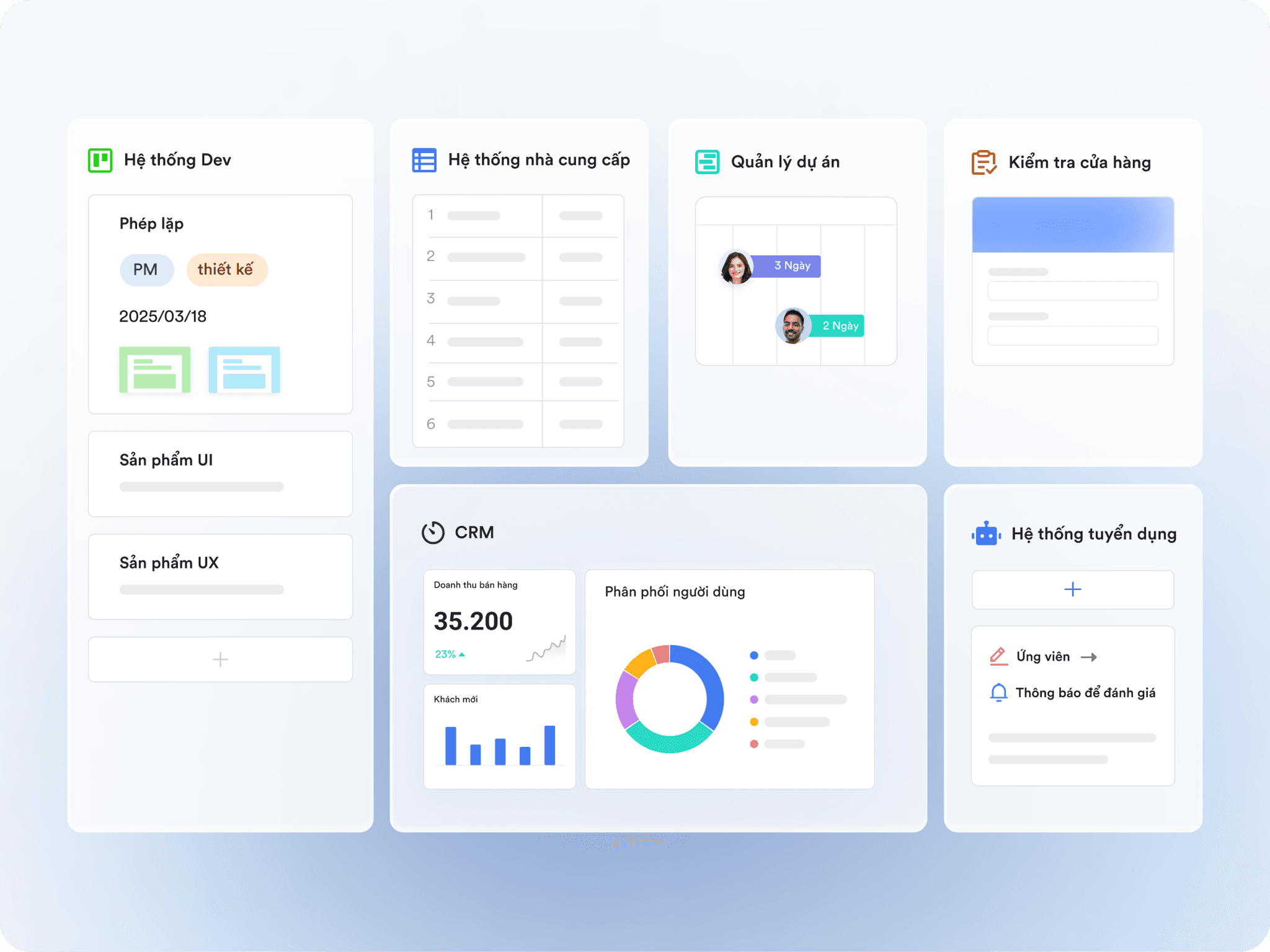 Phần mềm sẵn có không phù hợp. Với Lark Base, tùy chỉnh hệ thống kinh doanh trong vòng một giờ—không cần nhà phát triển, chi phí cao, hay thời gian chờ đợi dài. Khi doanh nghiệp của bạn phát triển, công cụ của bạn cũng vậy—nhanh chóng, linh hoạt và được xây dựng để phù hợp với nhu cầu của bạn.