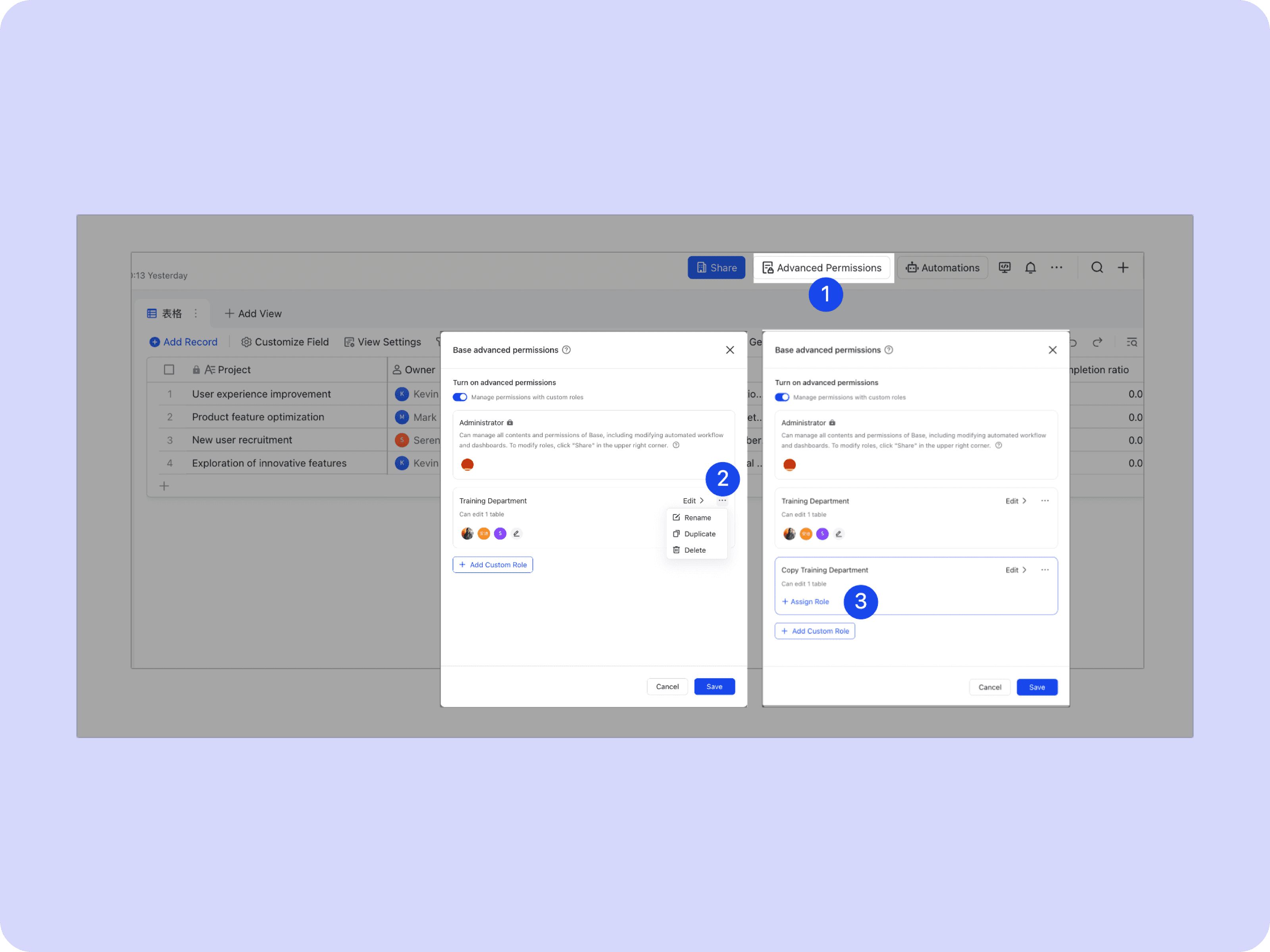 Configure who can view and edit specific fields or records in a table, and who can access dashboards and views by creating and assigning roles to members with different permission needs.