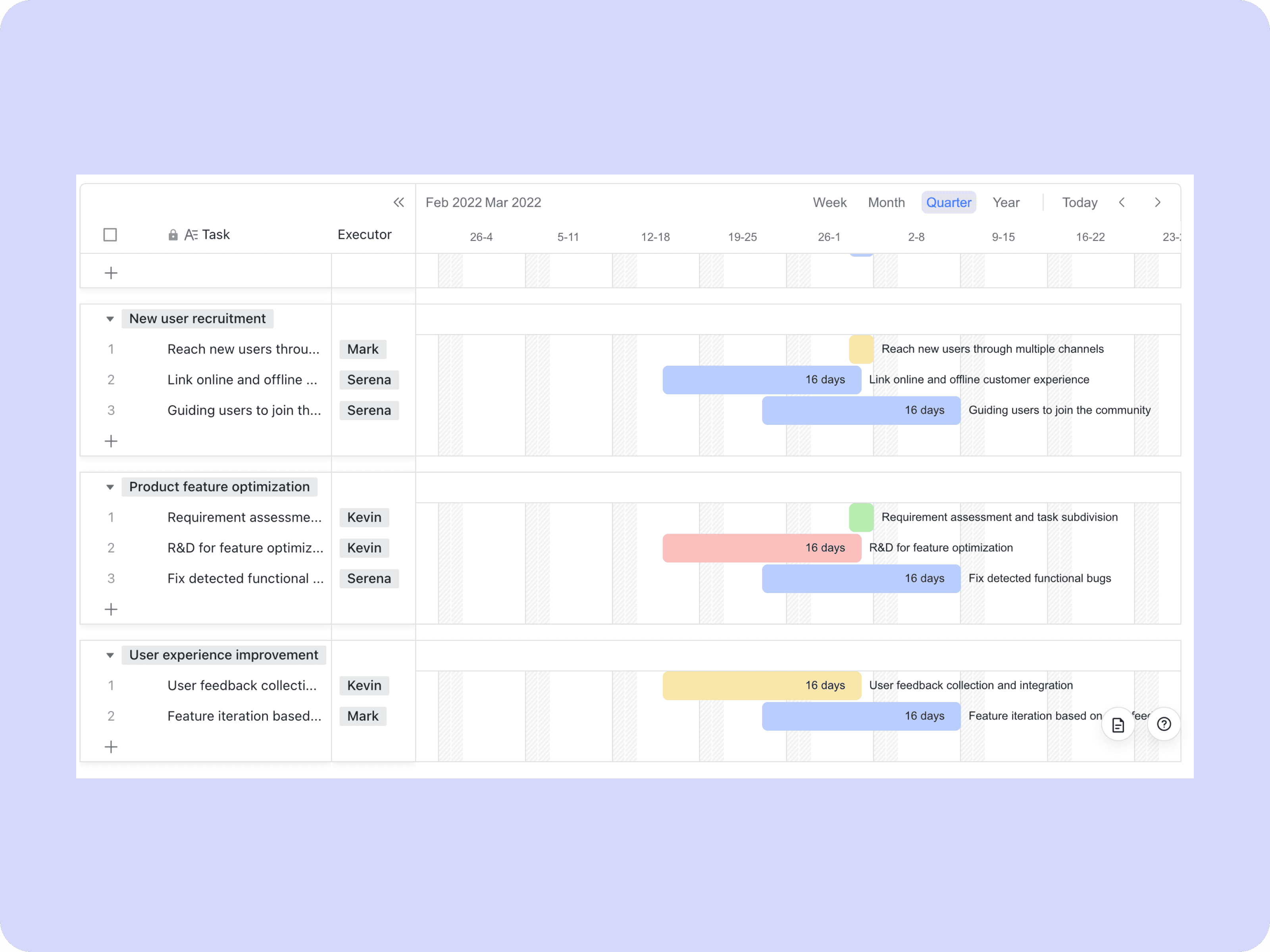 Lark offers unparalleled data visualization options, allowing project managers to choose from Grid View, Kanban View, Gantt View, Calendar View, and Gallery View. Tailor your project data presentation to meet your specific requirements effortlessly.